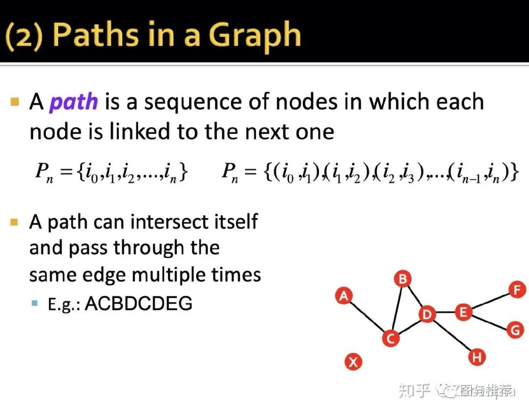 图中的距离也可以约等于最短的路径,比如图中点B到D的距离(如果我们假设每两相邻节点之间连线数值为1)是2,那么点A到x则是无穷(因为没有路径)