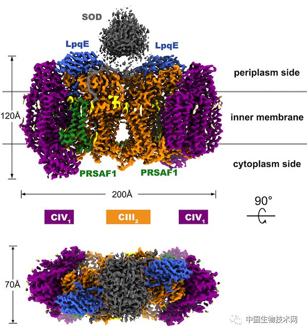 分枝杆菌呼吸链超级复合物CIII2CIV2SOD2的3.5 Å分辨率冷冻电镜结构