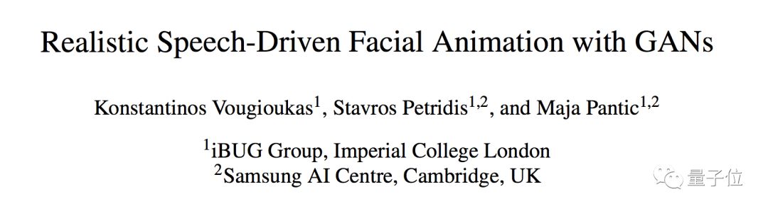 这项研究共有三位作者,分别为Konstantinos Vougioukas、Stavros Petridis和Maja Pantic,均来自伦敦帝国学院iBUG小组,主攻智能行为理解,其中二作和三作也是英国三星AI中心的员工。