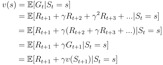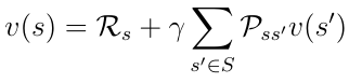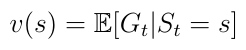 另一个重要的概念是价值函数v(s)之一。 价值函数将值映射到每个状态s。 状态s的值被定义为AI主体在状态s中开始其进展时将获得的预期总奖励(等式6)。