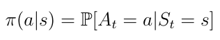 在这我们将讨论主体如何决定在特定状态下必须采取哪些行动。 这由所谓的策略 π(方程11)决定。 从数一点上,学角度讲,政策是对给定状态的所有行动的分布。 策略确定从状态 s 到主体必须采取的操作 a 的映射。