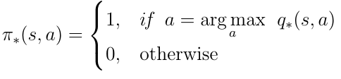 为了找到最好的策略,我们必须在 q(s,a)上最大化。 最大化意味着我们只从所有可能的动作中选择动作a,其中q(s,a)具有最高值。 这为最优策略 π 产生以下定义: