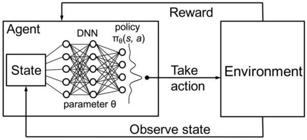 深度强化学习可以概括为构建一个直接从与环境的交互中学习的算法(或AI主体)(图5)。 环境可能是现实世界,计算机游戏,模拟甚至是棋盘游戏,如Go或国际象棋。 就像人类一样,AI 主体从其行为的后果中汲取灵感,而不是明确地教导。