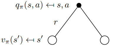 在这一点上,我们讨论v(s)和q(s,a)如何相互关联。 这些函数之间的关系可以在图中再次可视化: