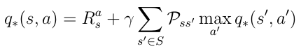 深度强化学习中最重要的主题是找到最优的动作 - 价值函数q *。 查找q *表示主体确切地知道任何给定状态下的动作的质量。 此外,主体可以决定必须采取哪种行动的质量。 让我们定义q *的意思。 最佳的动作值函数是遵循最大化动作值的策略的功能: