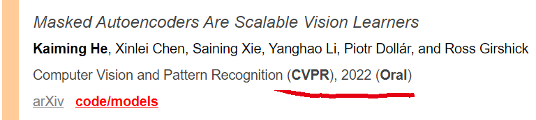 Amusi 前不久注意到 MAE 这篇工作已收录到 CVPR 2022 (Oral),代码已开源,github star 数量已突破3.3k!