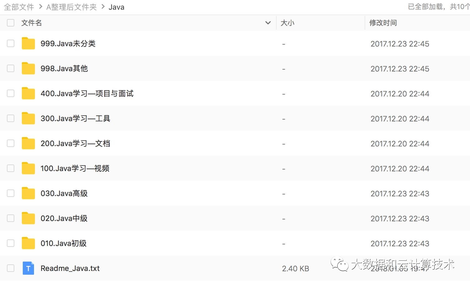 在这里你可以找到学习Java时用到的各种资料,其中包括Java初级,Java中级,Java高级相关资料。