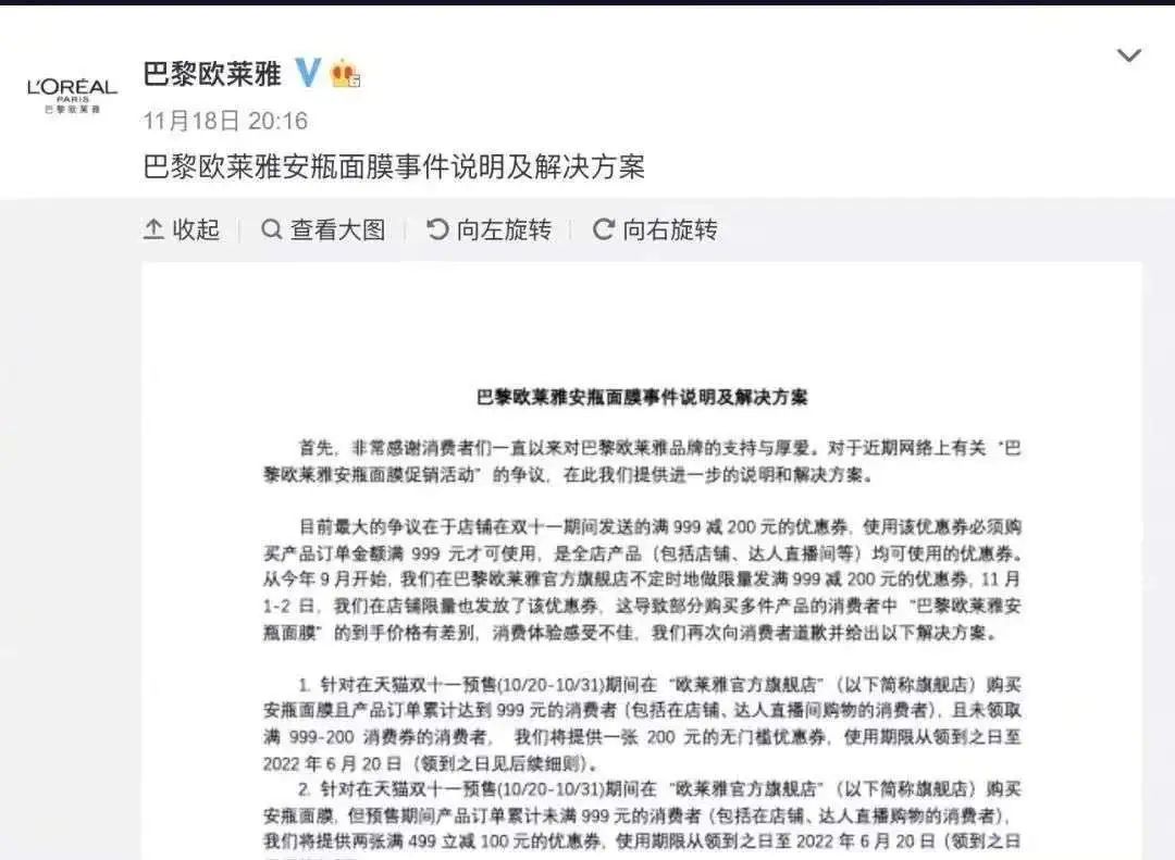 眼下,欧莱雅以优惠券赔偿暂时平了消费者的怒火,但丽芳觉得情况仍不乐观。买家可以用投诉、举报等组织严密的行为,来为自己争取正当权益。那么,行业也应该更新玩法,以求适应新的消费习惯。
