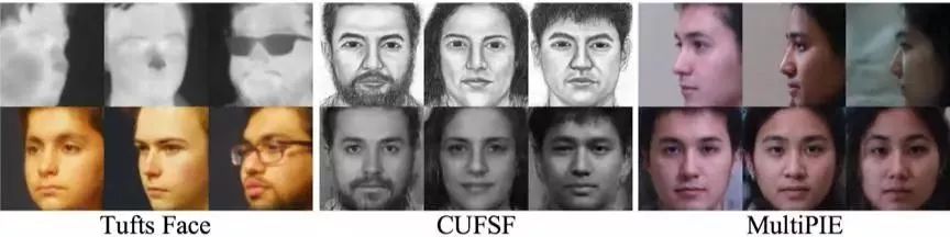 图3. 三个异质数据库上的对偶生成结果(生成现实世界中不存在的配对人脸图像)