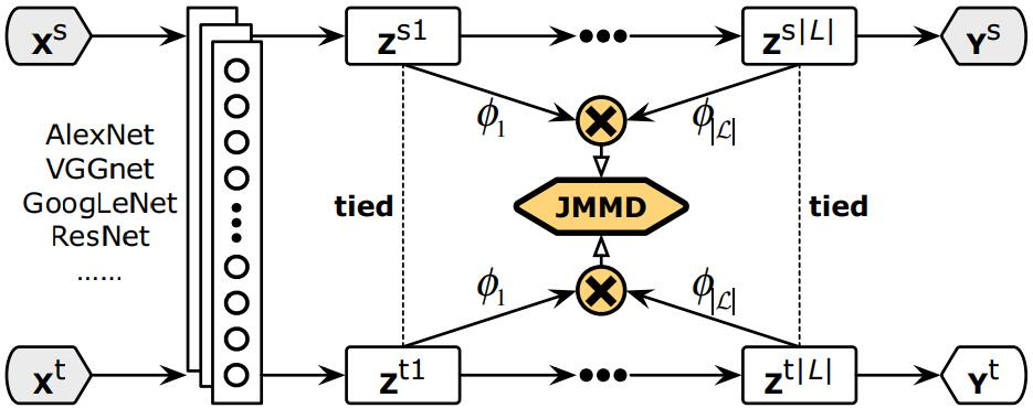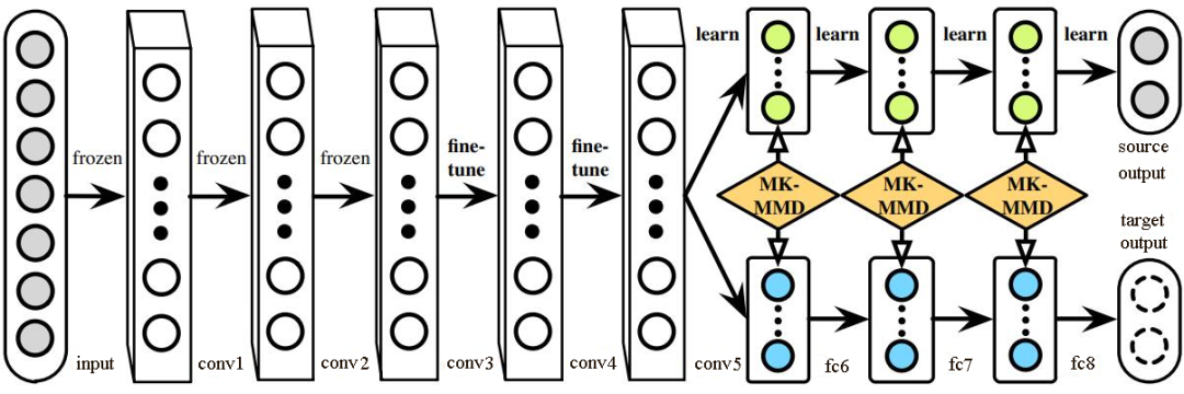 因此,后续的研究者大多都基于其思想进行改进,如将浅层网络改为更深层的 AlexNet、ResNet、VGG 等,将 MMD 换为多核 MMD 等。