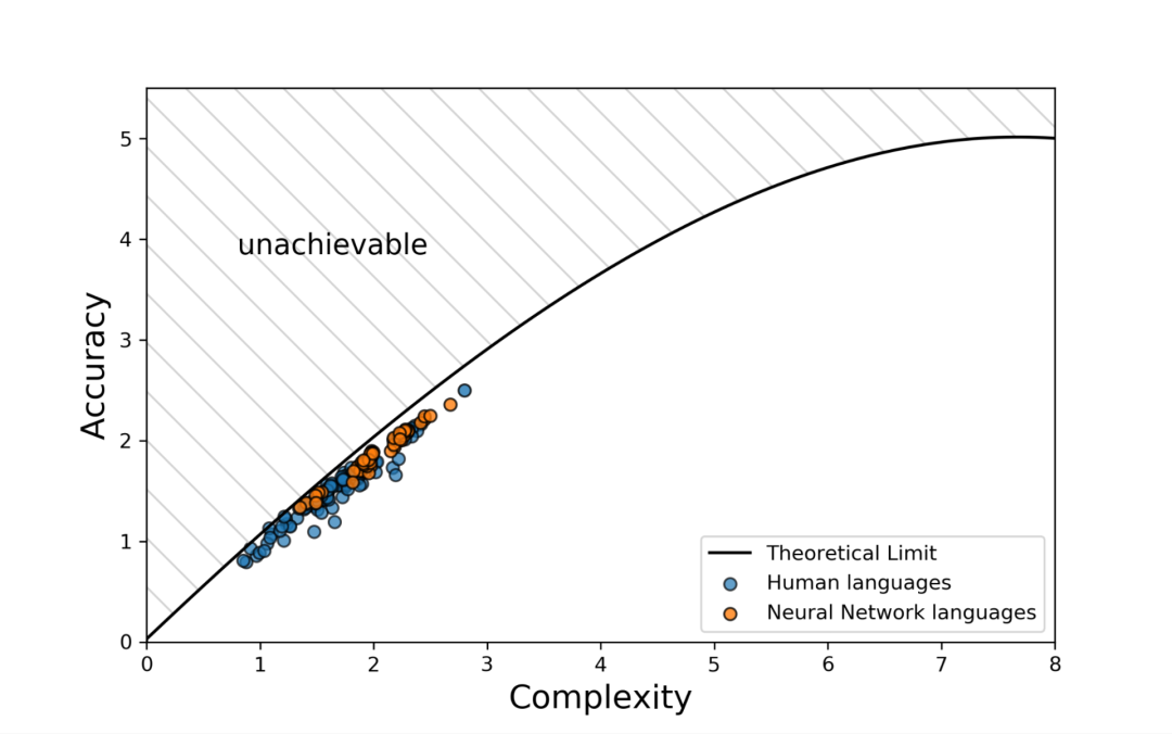 首先建立两个神经网络,一个负责说(speaker)和一个负责听(listener),并建立一个「沟通游戏」:在游戏的每一轮中,speaker从一个连续的颜色空间中看到一个颜色,然后输出一个符号(可以被认为是一个「单词」)。listener可能看到相同或不同的颜色,作为噪声输入。listener接收到由speaker输出的单词,然后尝试输出正确的颜色片段。最初,说话人随机生成单词,等到训练结束时,每个单词都代表了颜色空间的一个连续部分。研究团队多次重复这个实验,同时通过使目标颜色和噪声颜色的相似度发生变化,以此来改变任务的难度。这些变化产生了许多不同的颜色命名「词汇表」。在训练结束时,研究人员分析了这些词汇,发现AI生成的的颜色词与人类语言的性质相似。此外,这两种类型的语言都接近于正式定义复杂性和准确性之间可能的最佳平衡集合的边界(图中的黑线)。在后续实验中,研究人员发现,至关重要的是,当允许神经网络使用连续的符号而不是离散的符号进行交流时,复杂性和准确性之间的最佳平衡就不复存在了。两个神经网络虽然仍然可以通信,但是他们的交流效率变得很低。语言也许是人类最独特的特征,我们在日常中经常使用,但却不了解它。Facebook的研究表明,先进的人工智能模型,不仅对实际应用有用,而且还可以作为实验工具,回答有关人类语言(以及一般认知)的科学问题。 参考资料:https://ai.facebook.com/blog/ai-names-colors-much-as-humans-do/ 上云赋智,AI新家!2021年3月31日(周三),首期AI家主题论坛——「创新之都 AI赋智」由新智元创始人杨静主持,中关村软件园总经理张金辉到场致辞,主题演讲环节荣幸邀请到达闼科技创始人&CEO黄晓庆、科大讯飞执行总裁胡郁、英伟达亚太区副总裁潘迪等AI科研产业先锋,分享「5G上云 AI赋智」的精彩案例。现场还有达闼云端机器人Ginger小姜与大家进行精彩互动,还将根据新智元创新指数研究,公布「2020 AI Era 创新大奖」!(特邀合作嘉宾清华大学新闻学院沈阳教授致辞)新征程,新跨越,新智元&达闼科技邀你在新浪直播平台一同见证!扫描下方二维码,获取视频直播、图片云直播!