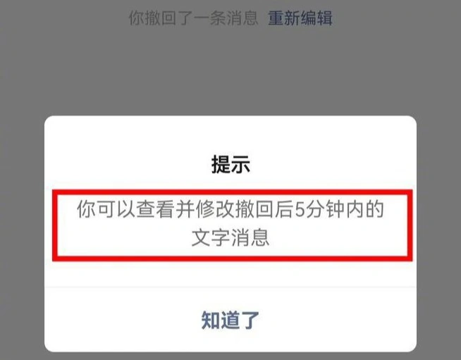 值得一提的是,有用户在网上贴出了一张图,显示新版微信文字消息可在五分钟内撤回,因此所有人都认为微信将会把原先撤回时限的 2 分钟延长到 5 分钟。对此,微信方面向新浪科技回应称此为谣言。微信表示,目前用户发出消息后,可撤回的时限仍是 2 分钟。新版微信在撤回消息后,5 分钟以内可以使用“重新编辑”功能进行编辑,而不是 5 分钟以内可以撤回。