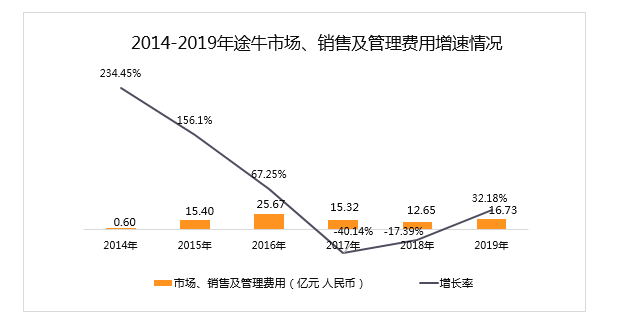 从财报可以看出,2014年到2016年,途牛的市场和营销以及管理支出都是上百倍的增速。从2014年到2019年,途牛的上述费用支出超过86亿元。