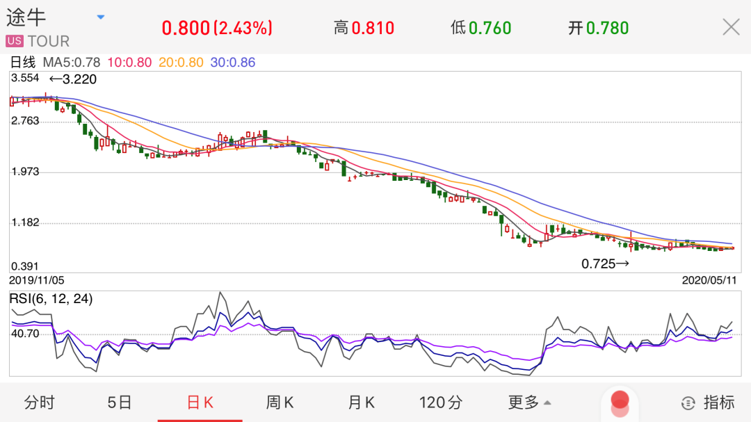 4月16日后,途牛的股价就再也没回到1美元以上。