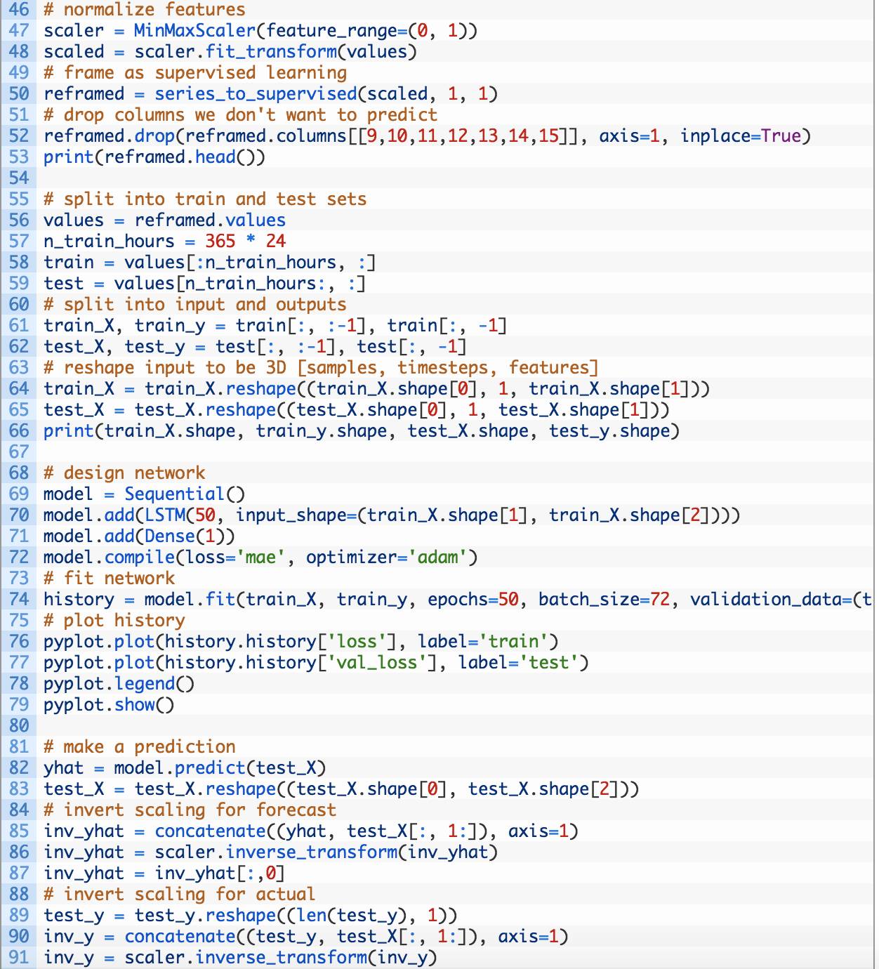 在本教程中,您学会了如何将 LSTM 应用于多变量时间序列预测问题。