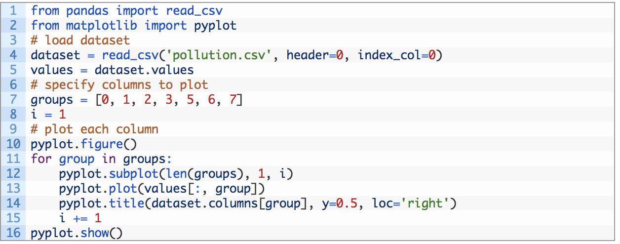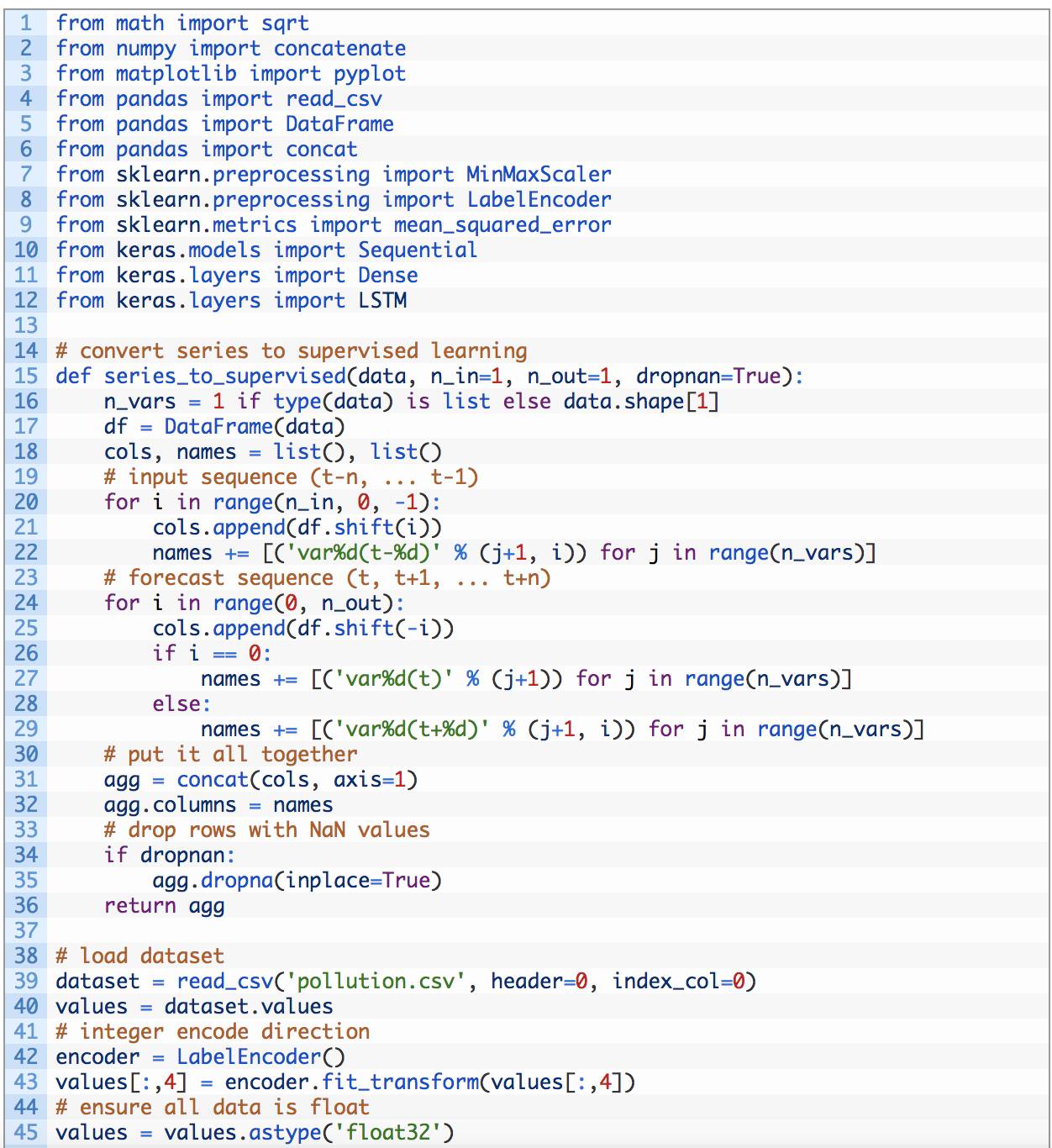 第一步是为 LSTM 模型准备污染数据集,这涉及将数据集用作监督学习问题以及输入变量归一化。