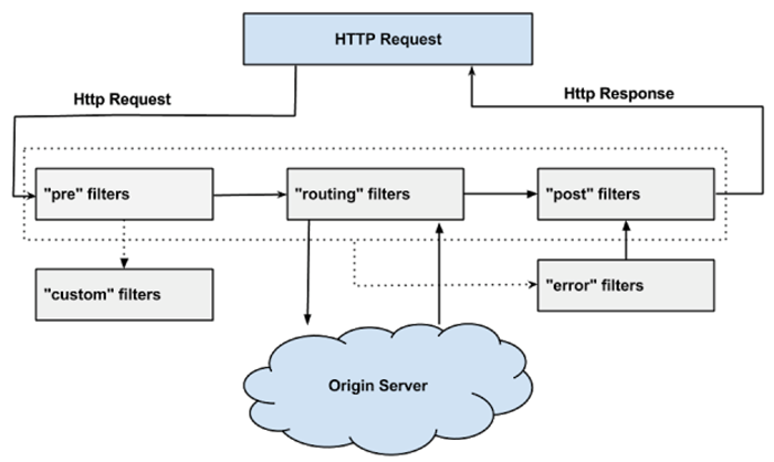 下面以 Zuul 为例,当消息出入网关需要经历一系列的过滤器。这些过滤器之间是有先后顺序的,并且在每个过滤器需要进行的工作也是各不一样: