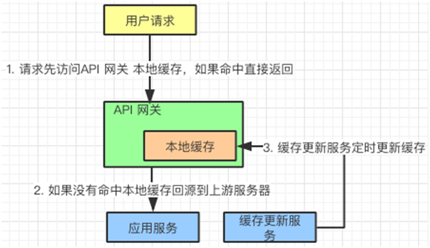 用户请求先访问 API 网关,如果发现有缓存信息,直接返回给用户。