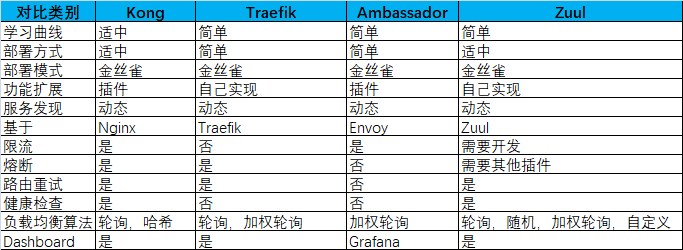 介绍了几个开源 API 网关的基本信息以后,我们从几个维度对他们进行比较:
