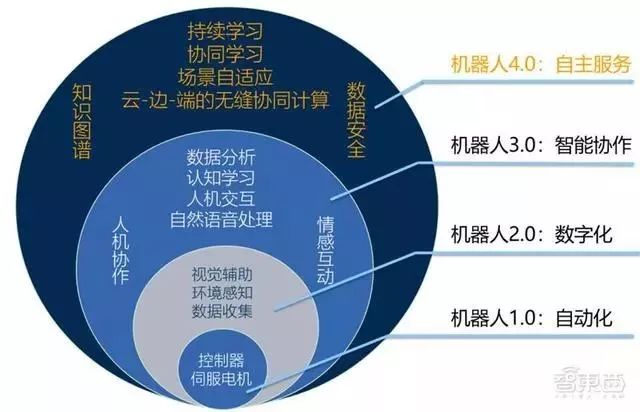 在机器学习方面,机器人 3.0 主要是采用基于大量数据进行监督学习的方法,这也是目前机器学习的主流方法,而在机器人 4.0,还需要加上持续学习和协同学习的能力,才能使得机器人能够适应更复杂的应用场景。