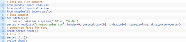 我们将把洗发水销量数据集分为两个集合:一个训练集和一个测试集。