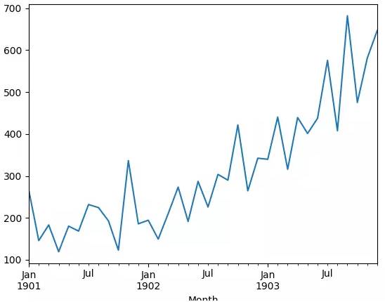 下面,让我们看一下我们将在本试验中使用的标准时间序列数据集。