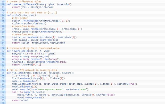转化观察值使其处在特定区间。具体来说,就是将数据缩放带 -1至1的区间内,以满足LSTM模型默认的双曲正切激活函数。