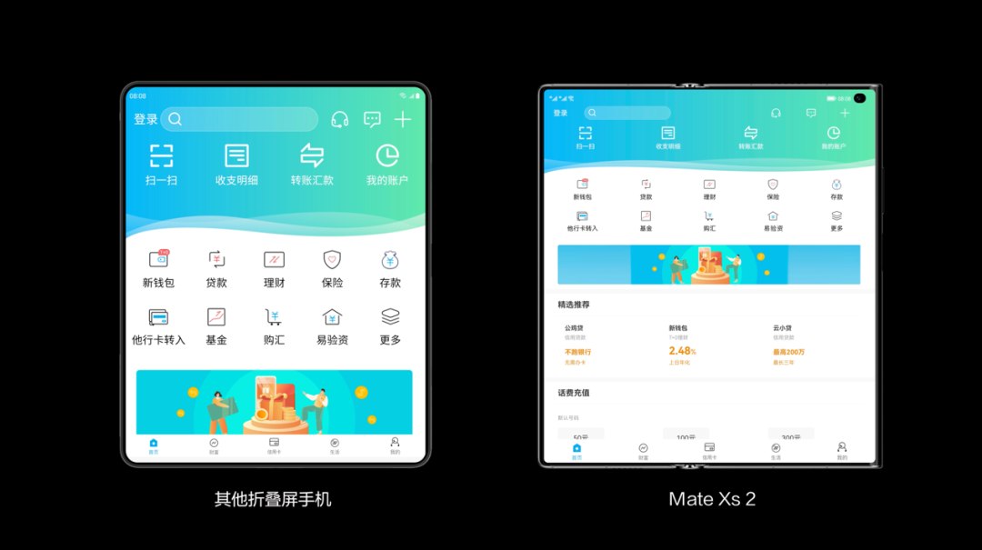 紧接着,在2020年的MWC展会上,华为迭代出第二代搭载外折方案的华为Mate Xs折叠屏生态,以平行视界、智慧多窗等交互功能为支点,推动折叠屏生态演进。