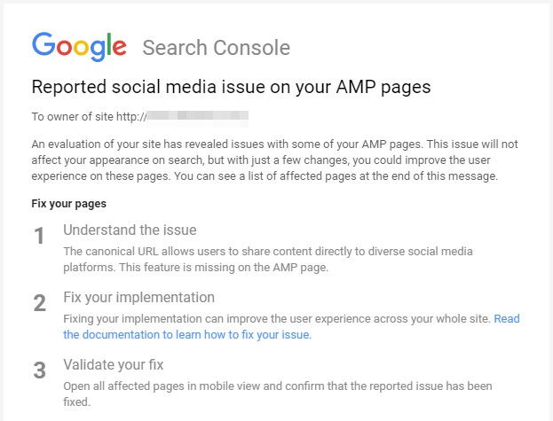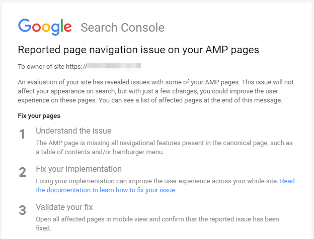好好看看这些消息。这些都是Google在这些网站的AMP版本中发现的问题: