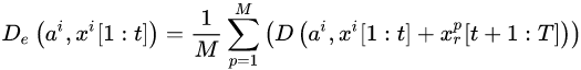 ,我们使用当前的 Generator,强制固定这个前缀,并重复生成出 $M$ 个完整的序列(有点采样实验的意思),分别交给鉴别器 D 进行打分,这 M 个模拟样本的平均奖励得分即为部分序列