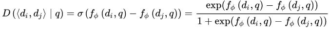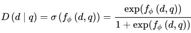 在 IRGAN 中,鉴别器 D 定义为判别式 IR 模型的逻辑回归: