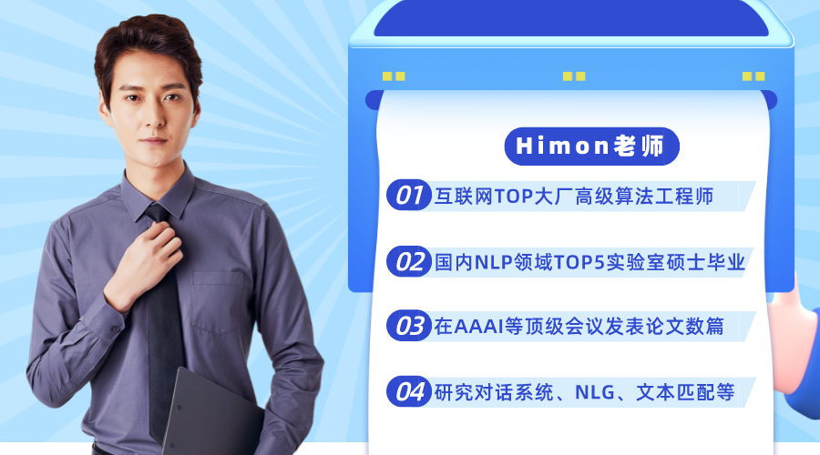 这次我们请来了互联网TOP大厂高级算法工程师——Himon老师,推出【文本匹配】论文精讲直播,为期2天,对论文和实验结果进行手把手分析,还有直播现场互动答疑,彻底夯实文本匹配基础。