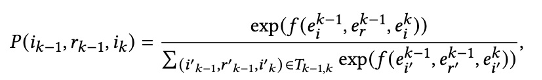 在每一跳,三元组从累积概率超过阈值的最小可能的三元组中选择,其中累积概率是通过对三元组的概率分数求和来计算的,采样的三元组的数量可以根据概率分布动态增加或减少,为了进行核采样,三元组分数被归一化用来计算三元组的概率。