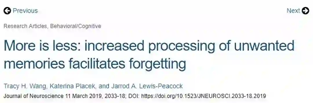研究第一作者、心理学博士后研究员Tracy Wang说:“适度水平的大脑活动对于遗忘机制至关重要的。活动过强会加强记忆,活动过弱则无法遗忘。重要的是,遗忘的意图增加了记忆活动,当这种活动达到‘适度水平’的最佳状态时,就会导致该经历被遗忘。”