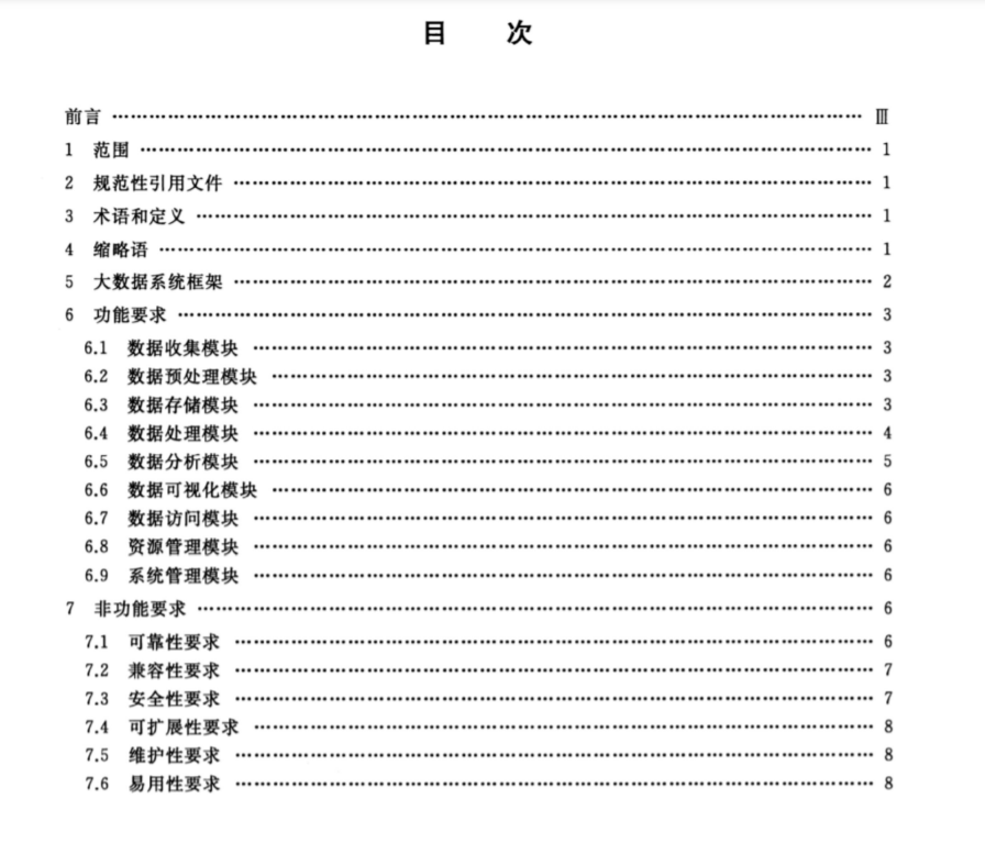 《信息技术大数据系统基本要求》国家标准,本文件本文件规定了大数据系统的功能要求和非功能要求,本标准适用于各类大数据系统要求的设计、选型和验收与检测。