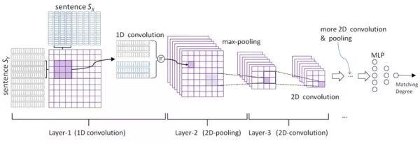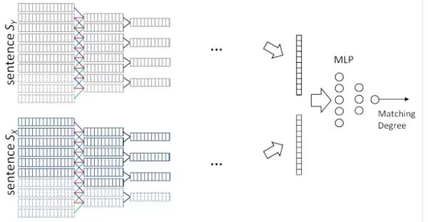 这种结构提前了两个句子间的交互行为,第一层中,首先取一个固定的卷积窗口