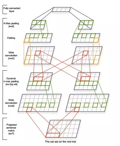 该模型亮点很多,总结如下,首先它保留了句子中词序和词语之间的相对位置,同时考虑了句子中相隔较远的词语之间的语义信息,通过动态k-max pooling较好地保留句子中多个重要信息且根据句子长度动态变化特征抽取的个数。