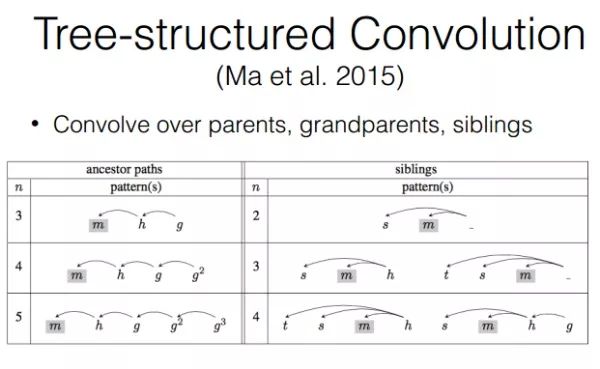 之前的论文中主要是对卷积层和池化层从本身结构上进行改造,下面的这篇论文主要考虑到了本身句子已有依存句法树信息,将其融入到句子的建模中来。论文《Dependency-based Convolutional Neural Networks for Sentence Embedding》便是提出这一想法,模型的想法是,不仅仅是利用句子中相邻的词信息作为特征信息,一个依存句法树的实际上将句子的语义信息关系真正地提取出来,由于整个卷积的过程,句子的语序关系仍然会丢失,通过将依存句法树中父子节点的语序信息和兄弟语序信息一起作为输入,可以更加有效地抽取句子的特征。