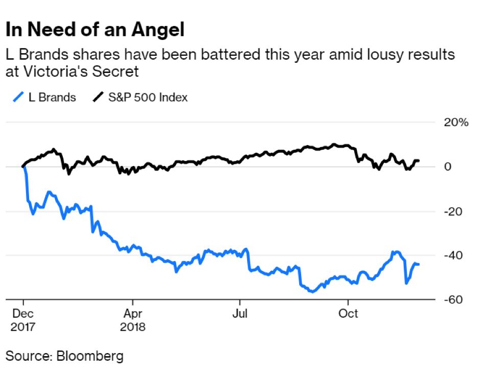 由于维多利亚的秘密业绩表现黯淡,2018年L Brands的股价受到重创
