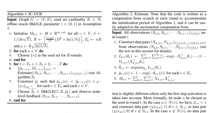 论文摘要:本文研究在线影响力最大化问题:玩家与未知社交网络进行多轮交互,每轮需要选取种子集合投放信息,观察信息传播过程的反馈数据,据此学习网络参数并更新选取策略,最终最小化多轮交互的累积悔值。本文针对独立级联(IC)和线性阈值(LT)传播模型,各自设计了一个基于点反馈并且使用标准离线黑箱算法的最优悔值在线算法,改进了之前IC模型下基于边反馈的算法和LT模型下使用非标准黑箱的算法。本文提出变种极大似然估计方法,并定义伪似然函数,以辅助参数估计。本文的分析能够针对每个网络参数得到一个置信区间。