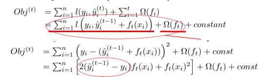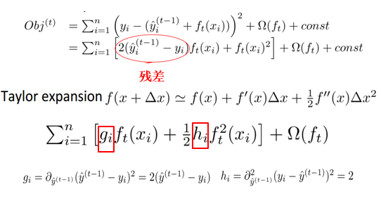 目标函数如上图,最后一行画圈部分实际上就是预测值和真实值之间的残差