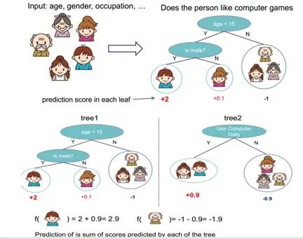 GBDT的核心就在于:每一棵树学的是之前所有树结论和的残差,这个残差就是一个加预测值后能得真实值的累加量。比如A的真实年龄是18岁,但第一棵树的预测年龄是12岁,差了6岁,即残差为6岁。那么在第二棵树里我们把A的年龄设为6岁去学习,如果第二棵树真的能把A分到6岁的叶子节点,那累加两棵树的结论就是A的真实年龄;如果第二棵树的结论是5岁,则A仍然存在1岁的残差,第三棵树里A的年龄就变成1岁,继续学习。