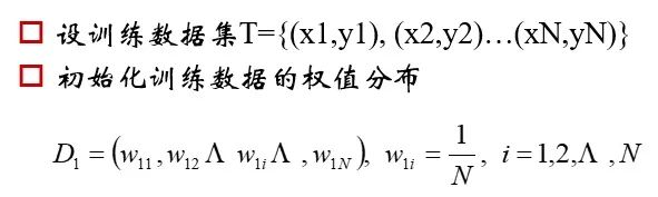 我们有一个数据集,样本大小为N,每一个样本对应一个原始标签起初,我们初始化样本的权重为1/N