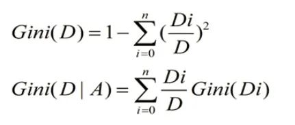 Gini(D)反映了数据集D的纯度,值越小,纯度越高。我们在候选集合中选择使得划分后基尼指数最小的属性作为最优化分属性。