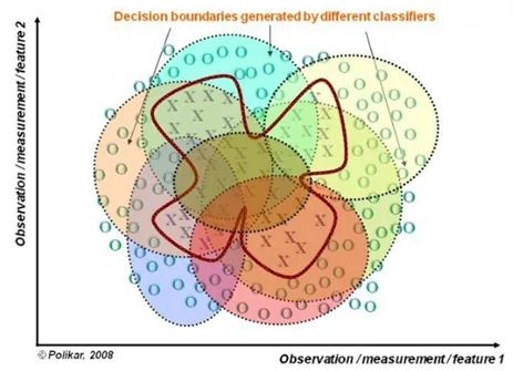 (1)、提升模型精度:整合各个模型的分类结果,得到更合理的决策边界,减少整体错误,实现更好的分类效果;