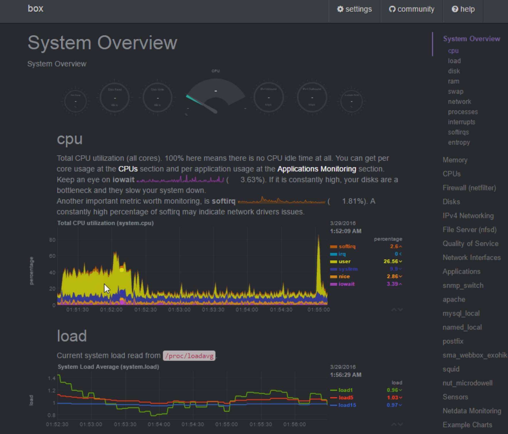 netdata快速高效,可以运行在所有系统(物理和虚拟服务器,容器,IoT设备)上,而不会中断其核心功能。