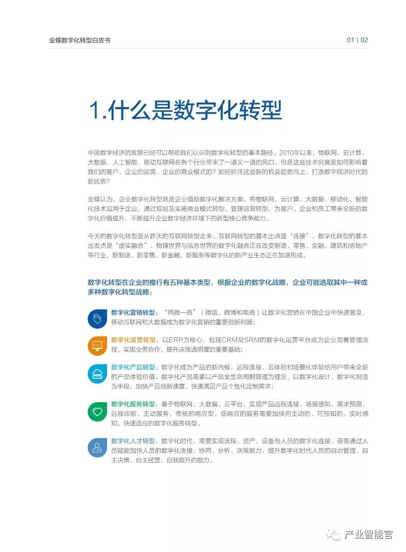 金蝶认为,企业数字化转型就是企业借助数字化解决方案,将物联网、云计算、大数据、移动化、智能化技术应用于企业,通过规划及实施商业模式转型、管理运营转型,为客户、企业和员工带来全新的数字化价值提升,不断提升企业数字经济环境下的新型核心竞争能力。