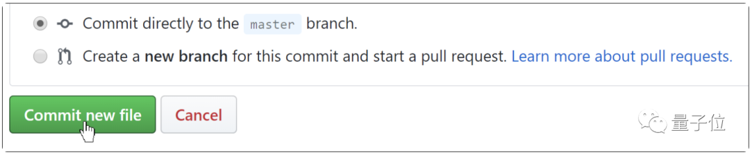 同样,点击绿色按钮Commit new file来提交。