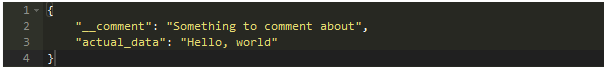 这是迄今为止最大的问题:您无法在JSON中添加注释。少数JSON解析器支持注释,但大多数不支持,而且不符合标准,事实上,出于种种原因,JSON已经明确不支持注释。