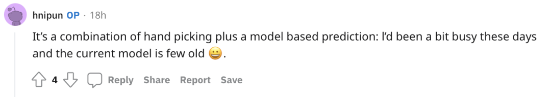 博主:「这是人工挑选外加模型预测的,只不过我最近有点忙模型也有些落后了」。
